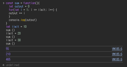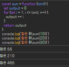 * 지역 스코프 : 범위를 벗어난 곳에서는 해당 변수에 접근할 수 없다.