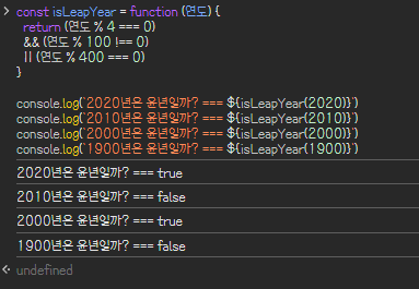 p. 202 <윤년을 확인하는 함수 만들기> 예제를 실행하여 2022년이 윤년인지 확인하는 결과 인증하기